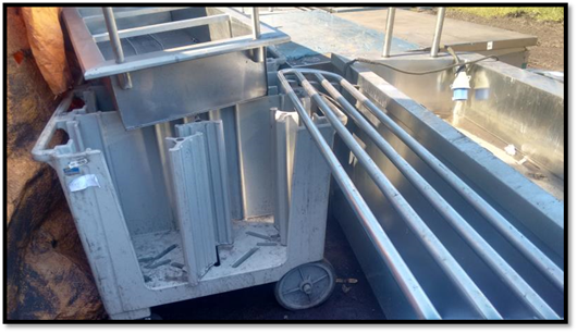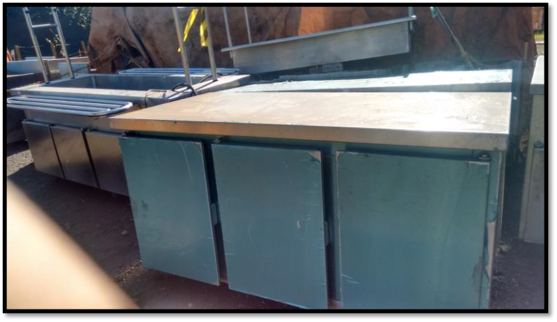 LOTE ÚNICO - 1 BALCÃO DISTRIBUIÇÃO DE ALIMENTOS QUENTE MASTERNOX; FORA DE USO, 1 CARRO TRANSPORTADOR DE PRATOS MOD: ADS MACON; FORA DE USO, 1 BALÇÃO DE APOIO EM AÇO INOX 03 PORTAS; FORA DE USO, 1 PISTA DISTRIBUIÇÃO DE ALIMENTOS QUENTE DE 4 GN; FORA DE USO, 1 BALÇÃO DE APOIO EM AÇO INOX 03 PORTAS; FORA DE USO, 1 CARRO TRANSPORTADOR DE PRATOS MOD: ADS MACON; FORA DE USO; RODIZIOS TRAVANDO E 1 CARRO TRANSPORTADOR DE PRATOS MOD: ADS MACON; FORA DE USO; FISSURAS NA BASE; RODÍZIOS NECESSITANDO TROCA. - SERÁ VENDIDO NO ESTADO EM QUE SE ENCONTRA -VITÓRIA / ES