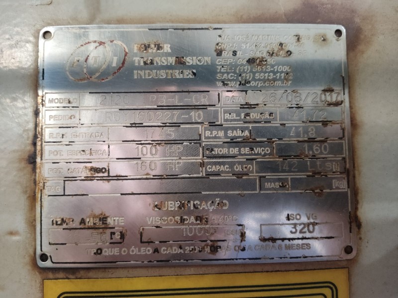 REDUTOR DE VELOCIDADE PTI FALK 100HP/160HP - RED. 1:42