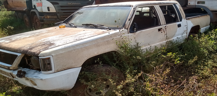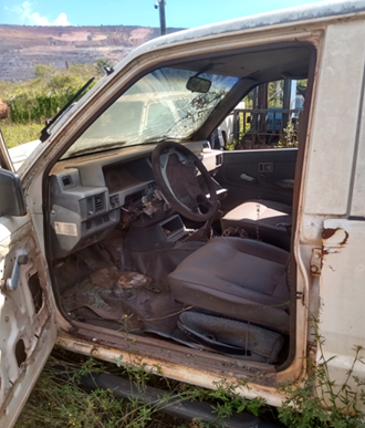 "Ativo sem condições de uso requer reforma geral, sistema de Telemetria não acompanha máquina. Faltando peças e componentes, não foi possivel testar funcionamento. Tampas abertas ao tempo. Bancos danificados, rasgados, desgastados pelo sol e chuva, entrando agua na cabine. Portas danificadas e com os vidros quebrados, parabrisa quebrados, vidro traseiro quebrado. LOTE ÚNICO - SERÁ VENDIDO NO ESTADO EM QUE SE ENCONTRA. "