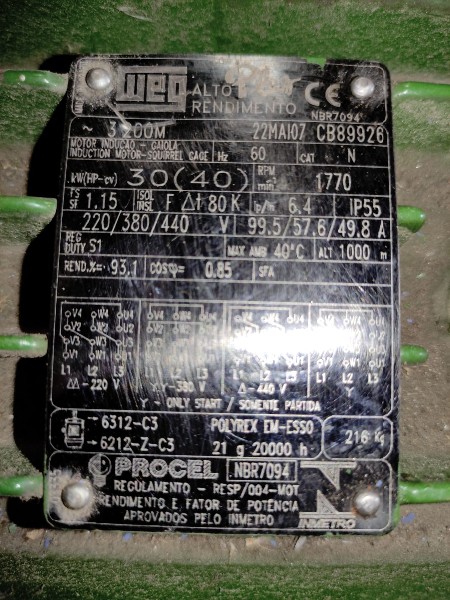 MOTOR WEG PLUS 40HP 1700RPM 220V/380V/440V