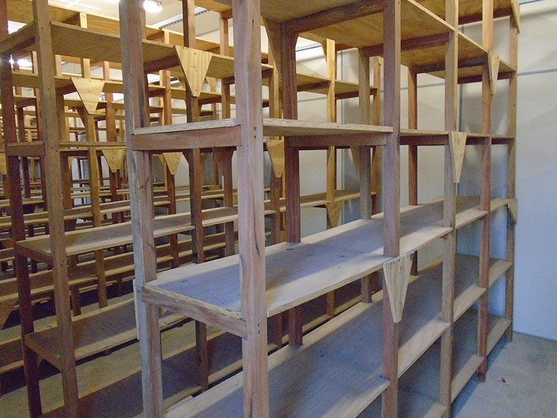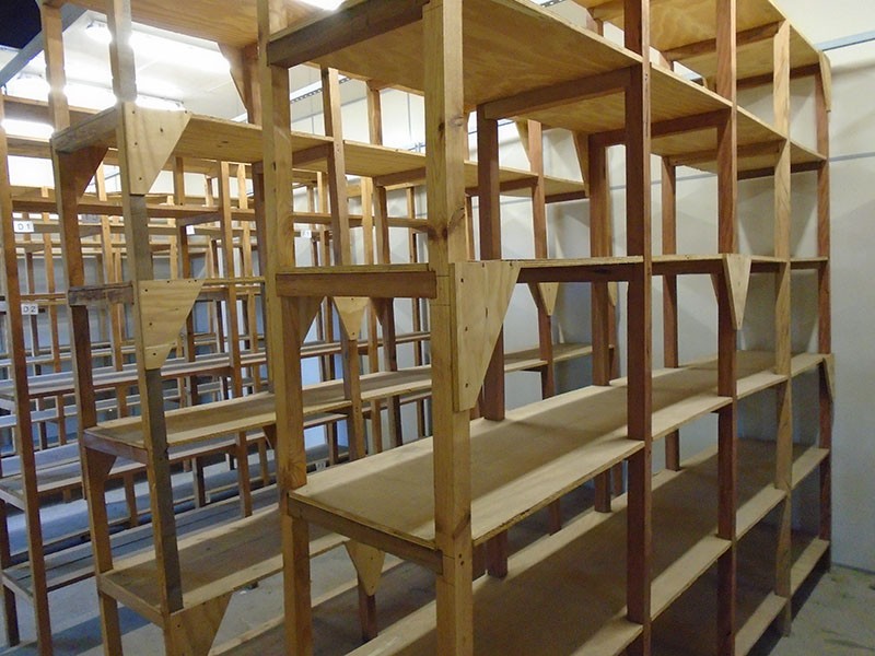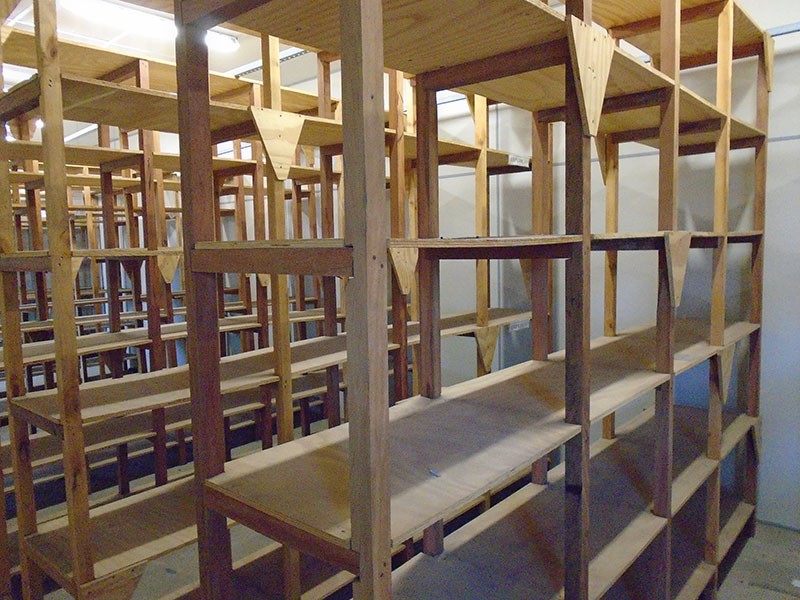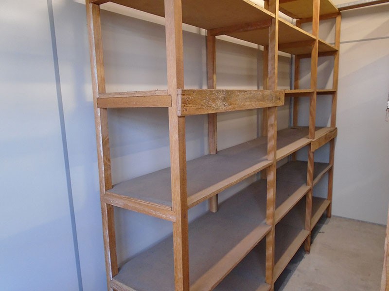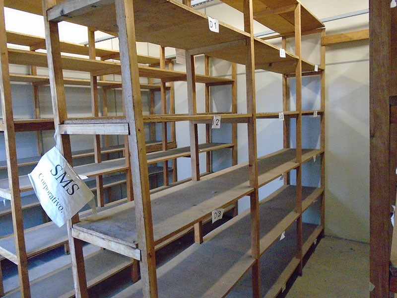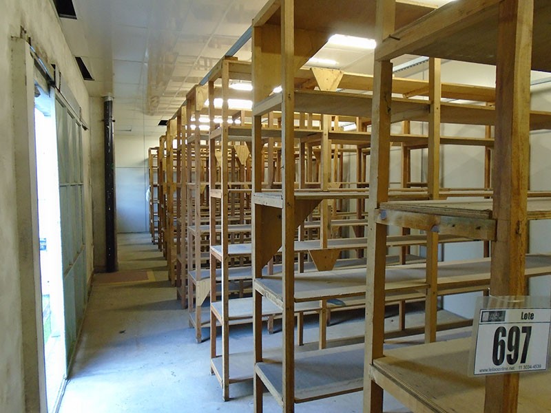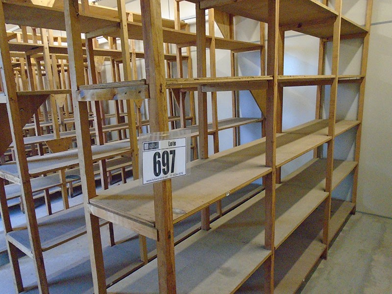 Estante de madeiras de diversos tamanhos montados. SERÁ VENDIDO NO ESTADO DE CONSERVAÇÃO EM QUE SE ENCONTRA NÃO CABENDO RECLAMAÇÕES POSTERIORES.