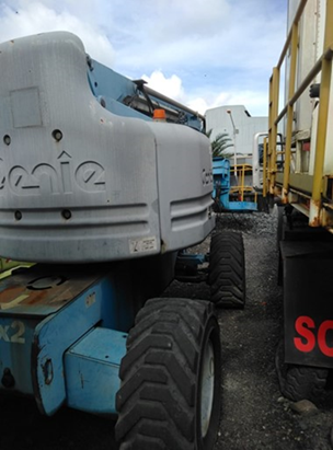 "• O sistema elétrico não está em boas condições. • Sistema mecânico está comprometido. • Não está elevando. • A pintura externa está desgastada. • Painel de operação se encontra com avarias. • Estão com todos os pneus, porém estão desgastados e ressecados. • Sistema de lubrificação não funciona. • Motor não funciona." LOTE ÚNICO - SERÁ VENDIDO NO ESTADO EM QUE SE ENCONTRA.