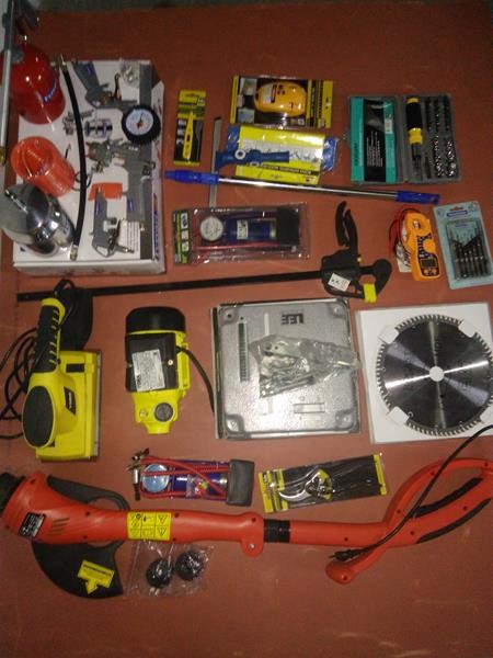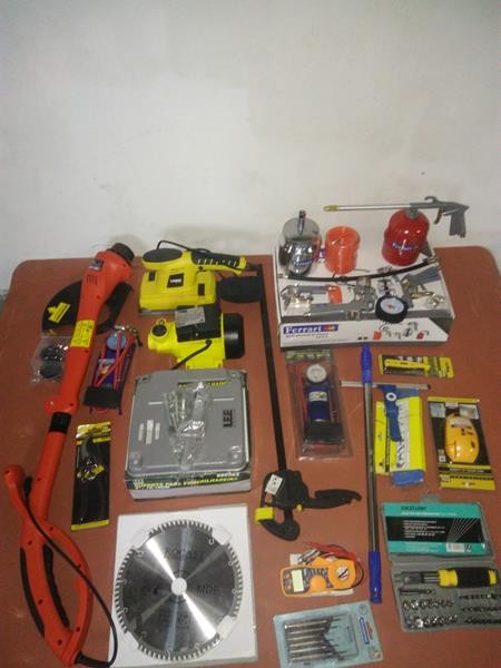 MARCA EDA. 01 NÍVEL A LASER, MARCA EDA. 01 TESTADOR DE VOLTAGEM DIGITAL, MARCA EDA. 01 JOGO DE CHAVE DE PRECISÃO, MARCA TRAMONTINA. 01 BOMBA DE AR COM PEDAL, MARCA LEE TOOLS. 01 MULTIMETRO DIGITAL/ALICATE AMPERÍMETRO MT87, MARCA EDA. 01 DISCO DE SERRA CIRCULAR, MARCA ROCAST. 01 RODO ESTENSIVEL MULTI USO, MARCA BLAC BULL. 01 SUPORTE PARA ESMERILHADEIRAS, MARCA LEE TOOLS. 01 BOMBA PEDAL COM MANÔMETRO, MARCA EDA. 01 BOMBA PERIFÉRICA DE 1/2HPM, INOX, BIVOLT, MARCA TORK. 01 LIXADEIRA ORBITAL 1/2 LIXA 110V, MARCA TORK. 01 APARADOR DE GRAMA DE 230MM, 127V, MARCA BLACK DECKER. 01 GRAMPO SARGENTO DE APERTO RÁPIDO 600MM, MARCA NOOL. 01 KIT PROFISSIONAL DE PINTURA, MARCA FERRARI. OBSERVAÇÕES: PRODUTOS NO ESTADO E SEM GARANTIA. PODENDO HAVER FALTA DE PEÇAS E COMPONENTES, OU MESMO NECESSITAR DE REPAROS. - SERÁ VENDIDO NO ESTADO EM QE SE ENCONTRA - LOC.: SÃO PAULO/SP