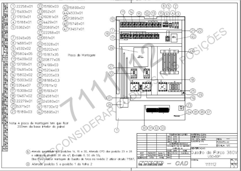 01 UNIDADE - QUADRO DE FORÇA COMPLETO USC 50P 380V 50/60; MAT. 7111112 - LOC. PORTO ALEGRE/RS
