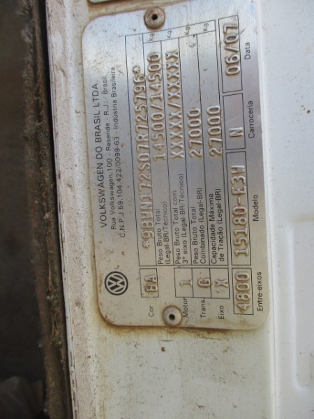 CAMINHÃO VW 15.180 EURO3 WORKER (BAU FR26006), ANO 2007, FR52508, LOC.SANTA HELENA