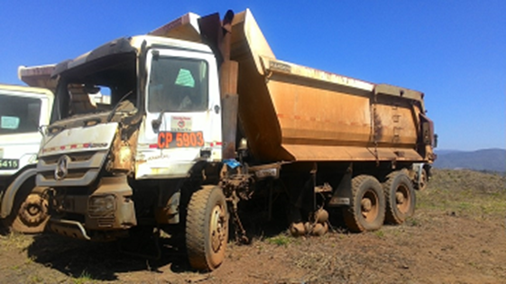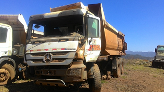 SERIAL / CHASSI: WDB932314AL453194 - RENAVAM: 223597449 - PLACA: HEU6333 - TAG/CP: CP5903 - KMS / HRS TRABALHADAS: 15167 - CONDIÇÃO: FALTAM PEÇAS - IMOBILIZADO: 1000711555 - 8000007322 - MOTOR: NÃO - TRANSMISSÃO: SIM - CAÇAMBA(PÁ)/LÂMINA: SIM - FALTANDO MOTOR, SISTEMA DE REFRIGERAÇÃO, SISTEMA DE TRANSMISSÃO, 2 EIXO, AR CONDICIONADO, PARTES DO SISTEMA DE DIREÇÃO, 7 RODAS MONTADAS, CUBO DO 4 EIXO, MOTOR DE PARTIDA, BOMBA DO SISTEMA DE BASCULMENTO, FAROIS, PAINEL DE INSTRUMENTOS DESMONTADO, CABINE COM VÁRIAS AVARIAS. - SERÁ VENDIDO NO ESTADO DE CONSERVAÇÃO EM QUE SE ENCONTRA. LOC. BARÃO DE COCAIS/ MG