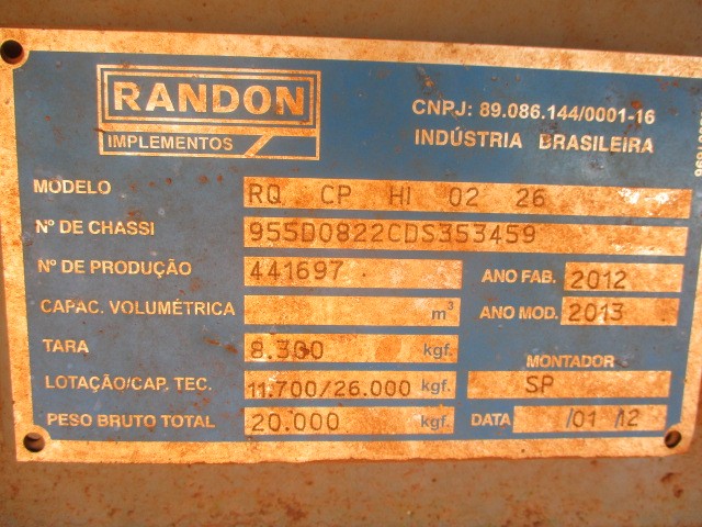 REBOQUE RANDON, ANO 2012/2013, FR112533, LOC. MUNDIAL