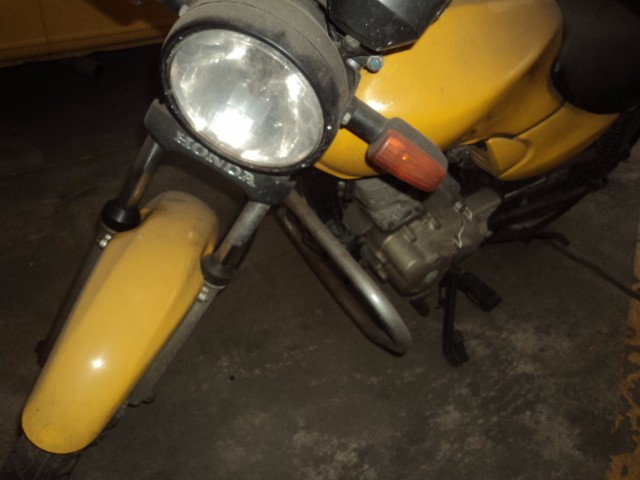 Troca da bateria, limpeza do sistema de combustível com troca dos componentes, troca vela, corrente, coroa, pinhão, cabo de embreagem, pneu traseiro e dianteiro, limpeza do tanque, troca de óleo, filtro de ar, repintura, reparar freios, retentor das bengas.