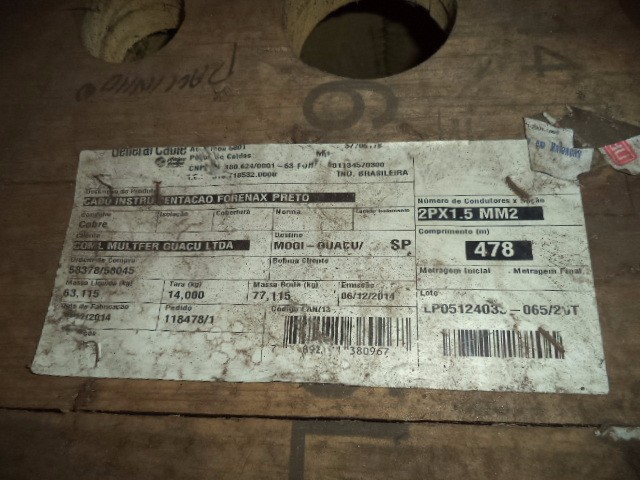 APROX. 450 METROS DE CABO SIN/INS CL5 PVC PT 2PX1,5MM², ( FOTO ILUSTRATIVA), UND BARRA BONITA/SP