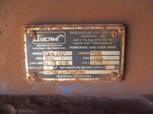 REBOQUE DE CANA PICADA USICAMP, MOD. RCI E2E2. ANO 2008 - FR4455124. - LOC. CAARAPÓ/MS