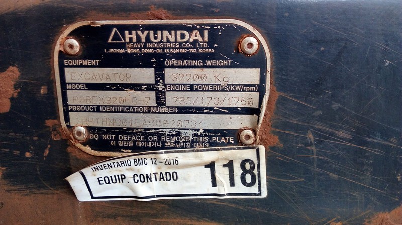 ESCAVADEIRA HIDRÁULICA DE ESTEIRA, MARCA HYUNDAI, MODELO ROBEX320LC-7, ANO 2010, SÉRIE HHIHN901EA0002073 - (L)