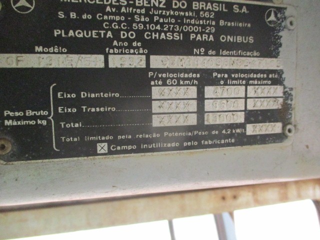 ONIBUS MERCEDES-BENZ, ANO 1992. - FR81354. - LOC. UNIVALEM/SP