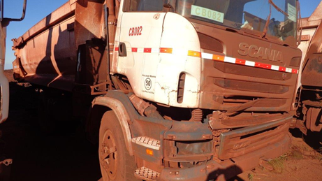MCR-010-2018 - FORA DE ESTRADA - 10X4 - SCANIA - 10X4 - ANO: 2010 - RENAVAM: ND - PLACA: ND - TAG/CP: CB82 - KMS / HRS TRABALHADAS: 17031 - CONDIÇÃO: DESATIVADO - IMOBILIZADO: 1000024326 - - MOTOR: SIM - TRANSMISSÃO: SIM - CAÇAMBA(PÁ)/LÂMINA: SIM - AUSÊNCIA DA PORTA L.E. POSSUI 2 (DOIS) TANQUES DE COMBUSTIVEL. AUSÊNCIA DE 11 (ONZE) PNEUS E 11 (ONZE) AROS. - SERÁ VENDIDO NO ESTADO DE CONSERVAÇÃO EM QUE SE ENCONTRA LOC: CORUMBÁ/MS
