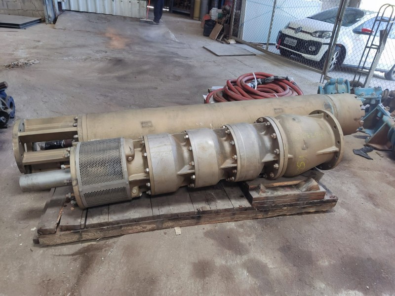 BOMBA SUBMERSA 3 ESTÁGIOS (CONSTRUÇÃO MAJORITARIAMENTE EM BRONZE); PESO DA BOMBA: APROX.: 3000KG; PESO DA EXTENSÃO: APROX.: 125KG
