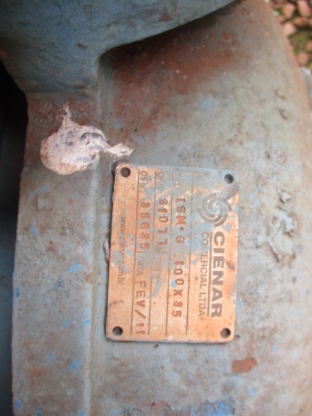 BOMBA CENTRIFUGA MCA IMBIL MOD ISM.G 100X35 ANO 2011 80M3/H - BOMBA NR 01 CIRCULACAO NPK, PLAQ. 40077-0, MEL_WEG_30CV_180M_1765RPM ANO 2005, LOC. LEME