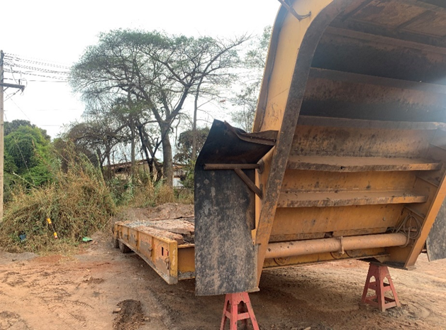 Necessita revisão estrutural geral, reparos nas trincas da estrutura, revisão dos cubos de roda, substituição de pneus em fim de vida útil e revisão das lanternas e chicotes elétricos. Condições operacionais: Deficientes. Veículo sem chave de ignição. Necessita de reparo? Sim. Necessita revisão estrutural geral, reparos nas trincas da estrutura, revisão dos cubos de roda, substituição de pneus em fim de vida útil e revisão das lanternas e chicotes elétricos. ESTRUTURA: Com defeito; Chassi: Com defeito. Apresenta várias trincas. Lataria: Com defeito. Faltando guarda corpo. Reservatório de combustível: NA. Escadas: Faltando. Grades: Com defeito. Faltando guarda corpo. Pino Rei: Mito desgastado. Necessita de reparo. Para Choque: Faltando. SISTEMA SUSPENSÃO: Faltando. Molas: Faltando. Balanças danificadas. SISTEMA ELÉTRICO: Faltando. Fiação e chicotes: Faltando. SISTEMA DE ILUMINAÇÃO: Faltando. Estado geral: Faltando. Iluminação lateral: Faltando. Farol dianteiro: NA. Faroletes traseiros: Faltando. Danificados. Outros acessórios: Faltando. SISTEMA DE FREIO: Com defeito. Cuicas de freio: Com defeito. Sistema pneumático: Com defeito. Tambores de freio: Com defeito. - LOTE ÚNICO - SERÁ VENDIDO NO ESTADO EM QUE SE ENCONTRA - RETIRADA/CARREGAMENTO POR CONTA DO COMPRADOR - VERIFIQUE CONDIÇÕES DE RETIRADA - NÃO SERÃO ACEITAS RECLAMAÇÕES POSTERIORES.