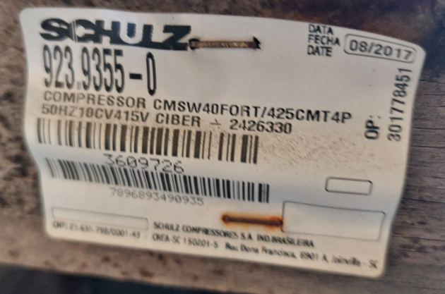 1 UNIDADE - COMPRESSOR SCHULZ 40PCM 50HZ. - LOC. PORTO ALEGRE/ES
