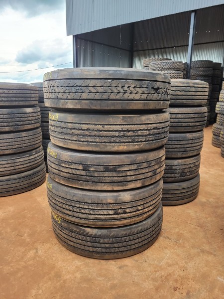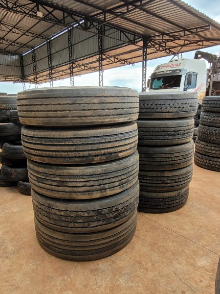 LOTE COM 10 PNEUS 295/80 R-22.5 - LISO, SEM RESSOLAGEM, BOM DE BORRACHA