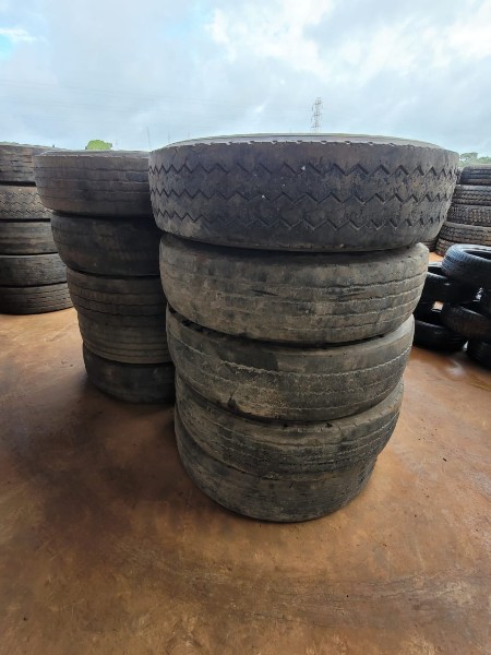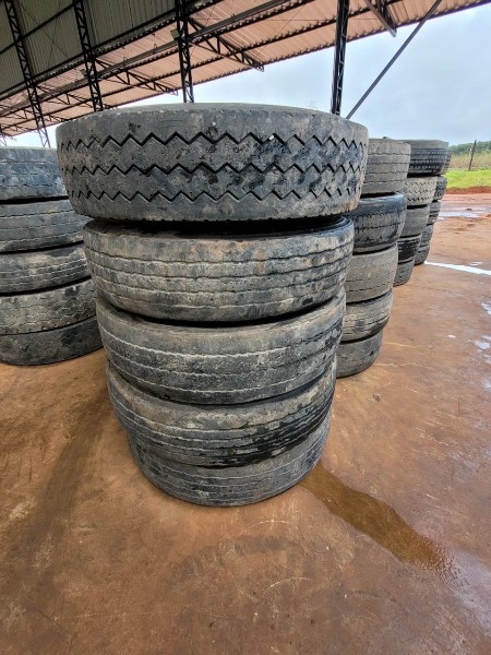 LOTE COM 10 PNEUS 275/80 R-22.5 ORIGINAIS ( CARCAÇAS ) BONS DE BORRACHA, SEM DEFEITO, SEM RESSOLAGEM
