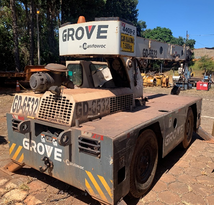 EQUIPAMENTO PODE SOFRER AVARIAS DEVIDO A CONDIÇÕES CLIMATICAS E FURTOS. ACONSELHAMOS A VISITA FISICA ANTES DA COMPRA NO LEILÃO. Condições operacionais: Regulares. Necessita de reparo: Sim. Revisão de lubrificação e eletromecânica em geral. Analisar possíveis vazamento de óleo e do sistema de arrefecimento. Adquirir/instalar sistema do enrolador de cabos e cabo de içamento. Equipamento não possui chave de ignição. MOTOR DE COMBUSTÃO: Regular. CABINE: Muito desgastado. Ar-condicionado: Muito desgastado. Banco: Muito desgastado. Necessário reforma do estofado. Painel: Muito desgastado. Portas: Muito desgastado. Retrovisores: Faltando. Falta o retrovisor LD. Vedação: Regular. Vidros: Regular. Instrumentos: Regular. Limpador para brisa: Muito desgastado. ESTRUTURA EXTERNA: Regular. Ferragens e painéis: Regular. Grades: Regular. Lataria: Regular. SISTEMA ELETRICO: Muito desgastado. Bateria: Faltando. Fiação e chicotes: Muito desgastado. Instrumentos: Muito desgastado. Motor de partida: Muito desgastado. Painéis: Muito desgastado. SISTEMA DE ILUMINAÇÃO: Regular. Estado Geral: Regular. Farol dianteiro: Regular. Faroletes traseiros: Regular. SISTEMA HIDRAULICO: Regular. Bombas: Regular. Cilindros: Regular. Mangueiras: Regular. SISTEMA DE ARREFECIMENTO: Regular. Radiador: Regular. Mangueiras: Regular. TREM DE FORÇA: Regular. Transmissão Regular. Diferencial: Regular. Cubos dianteiros: Regular. Cubos traseiros: Regular. Conversor: Regular. LOCOMOÇÃO: Muito desgastado. Estado das rodas: Regular. Estado dos pneus: Regular. Devido ao tempo inoperante pode ser necessário a troca. ESTADO DO CHASSI: Regular. ESTADO DA LANÇA: Regular.. - LOTE ÚNICO - SERÁ VENDIDO NO ESTADO EM QUE SE ENCONTRA - RETIRADA/CARREGAMENTO POR CONTA DO COMPRADOR - VERIFIQUE CONDIÇÕES DE RETIRADA - NÃO SERÃO ACEITAS RECLAMAÇÕES POSTERIORES.