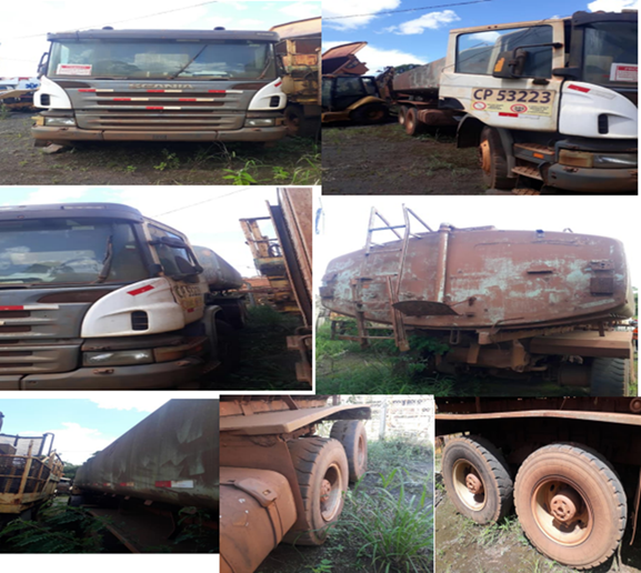 Ausência de peças no motor e mangueira ressecada. Faltam 04 conjuntos completos de rodas e pneus, pneus presentes muitos desgastados. Cabine e estrutura com defeitos. Sistema de direção, freio e elétrico com peças faltando. Equipamento não operacional. Falta segundo eixo direcional, alterado de 8x4 para 6x4. LOTE ÚNICO - SERÁ VENDIDO NO ESTADO EM QUE SE ENCONTRA - PODE HAVER FALTA DE PEÇAS - REMARCAÇÕES/REGULARIZAÇÕES/ OUTROS, CHASSIS/MOTOR,CARROCERIA/OUTROS, SERÁ POR CONTA DO COMPRADOR - RETIRADA/CARREGAMENTO POR CONTA DO COMPRADOR - VERIFIQUE CONDIÇÕES DE RETIRADA - VISITE O LOTE - NÃO SERÃO ACEITAS RECLAMAÇÕES POSTERIORES.
