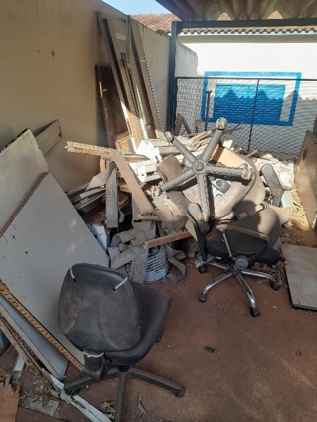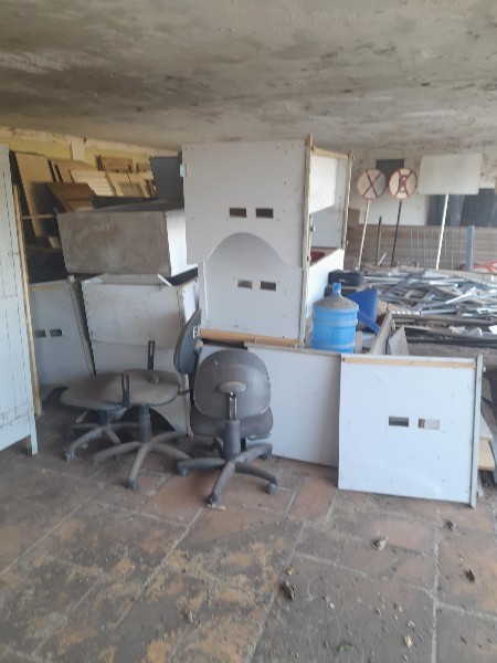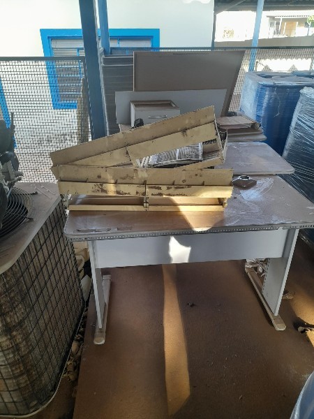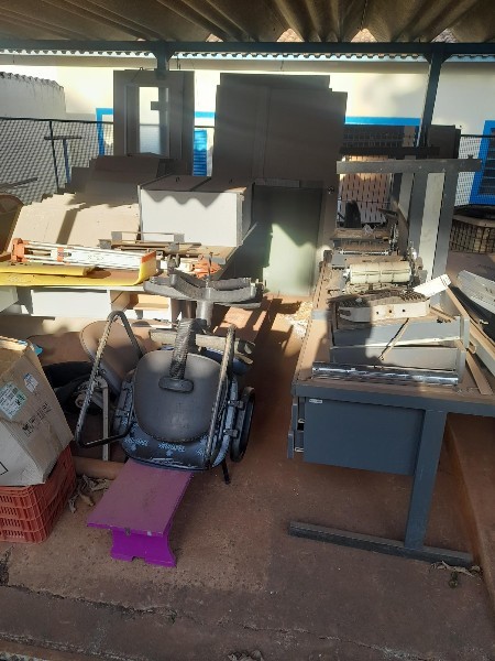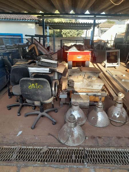 11 ARMÁRIOS, 15 MESAS ,3 CONDENSADORA DE AR, 1 ENCERADEIRA, 20 CADEIRAS, 11 MESAS, 10 PORTAS, 1 SCANER, SUCATA DE DIVISÓRIAS, (NECESSÁRIO UMA CARRETA PARA CARREGAR TODO O LOTE). - LOTE ÚNICO - SERÁ VENDIDO NO ESTADO EM QUE SE ENCONTRA. - RETIRADA/CARREGAMENTO POR CONTA DO COMPRADOR - VERIFIQUE CONDIÇÕES DE RETIRADA - NÃO SERÃO ACEITAS RECLAMAÇÕES POSTERIORES.