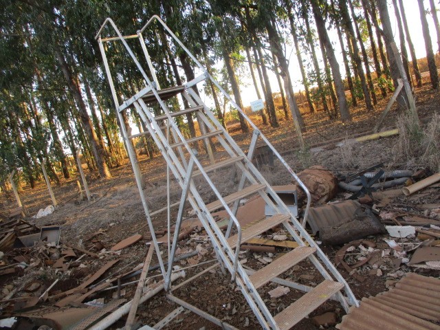 1 ESCADA DE ALUMINIO, 1 CX D AGUA 155LTS, 1 CAPOTA E 1 TOLDO, LOC. JATAI