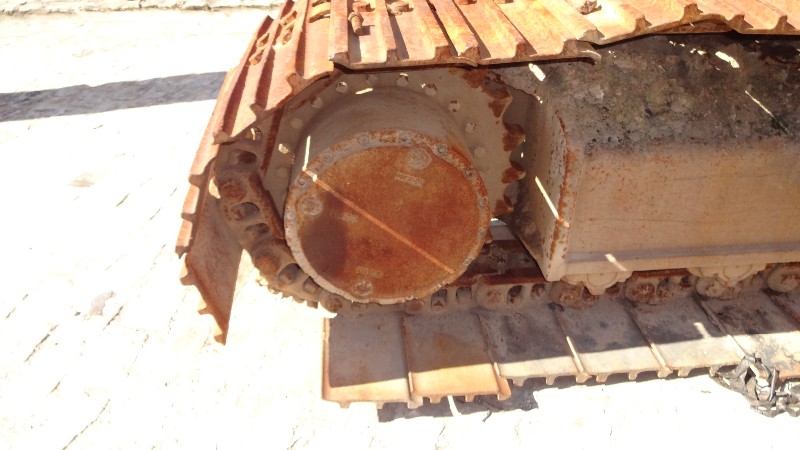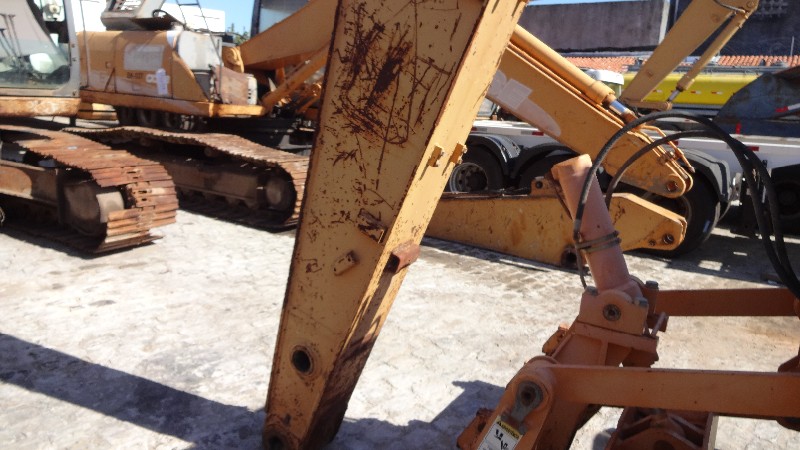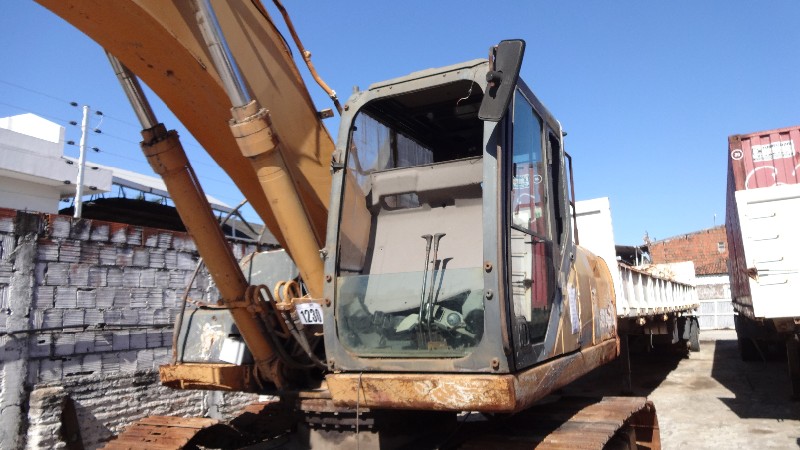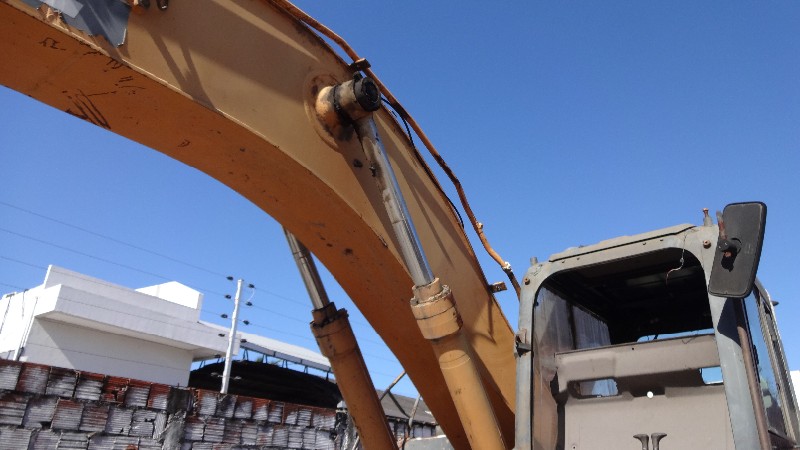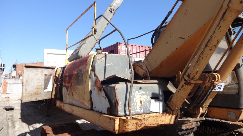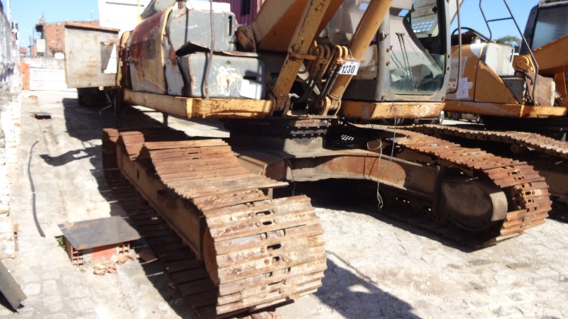 Equipamento com motor Isuzu com motor de partia, alternador e compressor de ar condicionado no local, material rodante com sapatas de 700 mm de largura com pinos e buchas sem marcas e com algumas sapatas empenadas e outras quebradas. Conjunto de escavo sem sinais de soldas ou trincas, porem sem pistão e caçamba completa. Possui linha de hidráulico auxiliar (kit PDR) incompleto e cabine está parcialmente desmontada e com alguns vidros quebrados