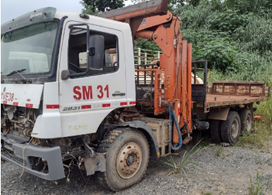 CAMINHÃO MUNCK MERCEDES BENS 2831, FALTAM DIVERSAS PEÇAS E NÃO FUNCIONA. TODA LOGISTICA DE TRANSPORTE E CARREGAMENTO É POR CONTA DO COMPRADOR. - LOTE ÚNICO - SERÁ VENDIDO NO ESTADO EM QUE SE ENCONTRA. - SEM GARANTIA - RETIRADA/CARREGAMENTO POR CONTA DO COMPRADOR - VERIFIQUE CONDIÇÕES DE RETIRADA - NÃO SERÃO ACEITAS RECLAMAÇÕES POSTERIORES