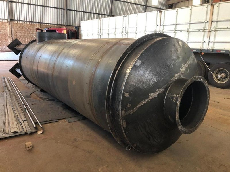 Com uma capacidade de secagem de 300 t/dia (12,5t/h); confeccionado com chapa de aço carbono de ½” qualidade SAE-AISI 1020; Acompanha conjunto de roletes e anéis de rolagem; Câmara estática para queima de gases pré-fabricada em chapa de aço carbono de 1/2” qualidade SAE 1020; Pecas cilíndricas calandrardes em chapa de aço carbono de ¼”, SAE-AISI 1020; Dutos de interconexão e chaminé chapa de aço carbono de ¼” , SAE-AISI 1020. Altura de 15 metros; Todas as pecas fazem parte do sistema de tratamento dos gases, incluindo tanque lavador; LOTE ÚNICO; SEM TESTE- SERÁ VENDIDO NO ESTADO EM QUE SE ENCONTRA - RETIRADA/CARREGAMENTO POR CONTA DO COMPRADOR - COMITENTE: MEGA AÇO - VISITE O LOTE, NÃO SERÁ ACEITO RECLAMAÇÕES POSTERIORES - VISITAÇÃO: “Verificar normas e procedimentos descritos no item 2 das Condições de Venda." LOCALIZAÇÃO PARA RETIRADA EM UBERLÂNDIA/MG.