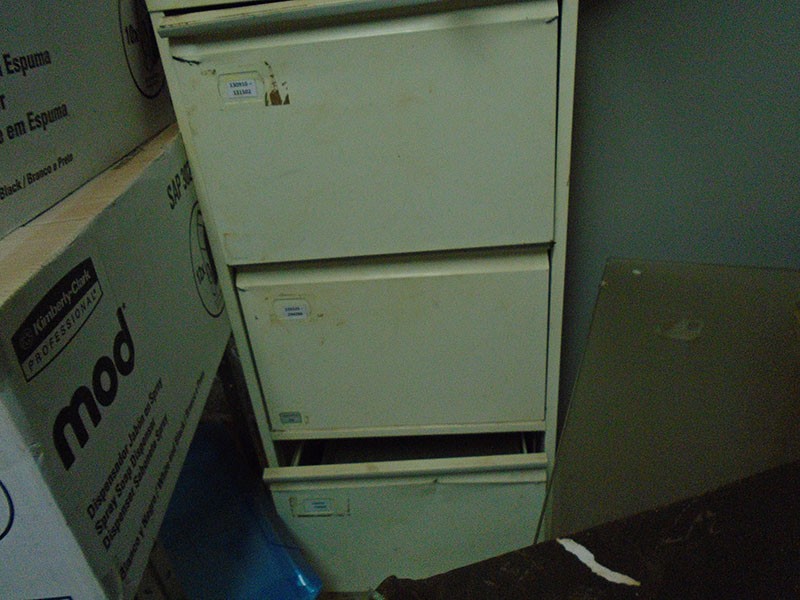 APROX. 200 CADEIRAS DE ESCRITÓRIO SUCATEADAS; BALCÃO DE RECEPÇÃO; 2 ARMÁRIOS DE 4 GAVETAS (SENDO UMA DE METAL) 1 AR CONDICIONADO; BALCÃO REFRIGERADO EM AÇO INOX E 2 CAFETEIRAS. - S/ FR. - LOC. TARUMÃ