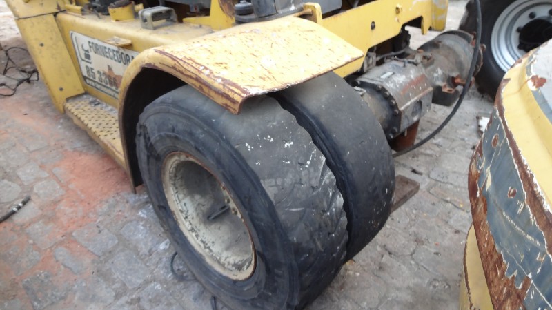 Equipamento sem motor, transmissão, bomba, comando hidráulico, eixo traseiro e torre. Possui exio dianteiro e banco com mini alavancas.