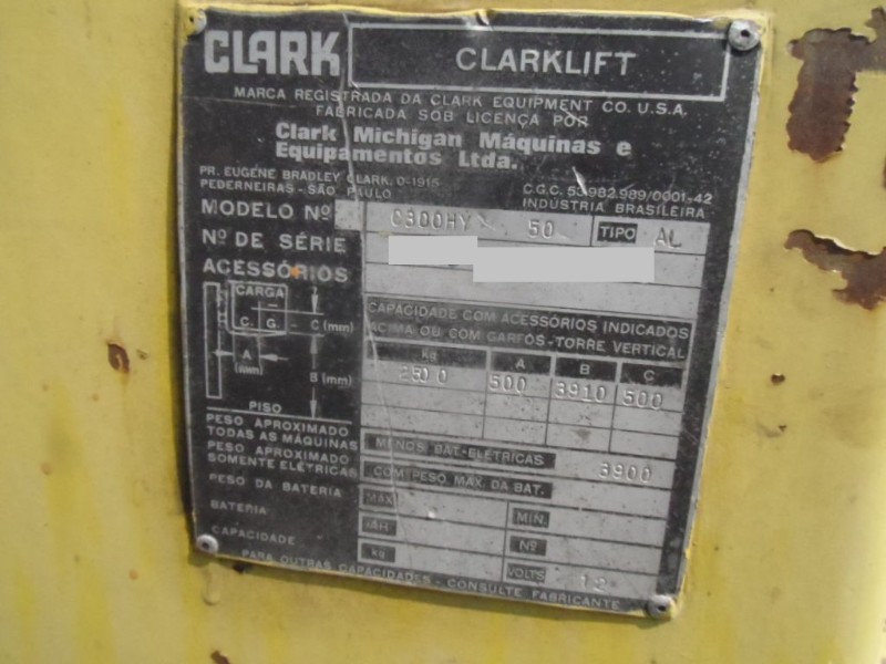 EMPILHADEIRA CLARK; MODELO C300HY; CAPACIDADE 2.5 TONELADAS - FUNCIONANDO