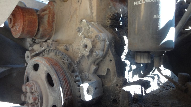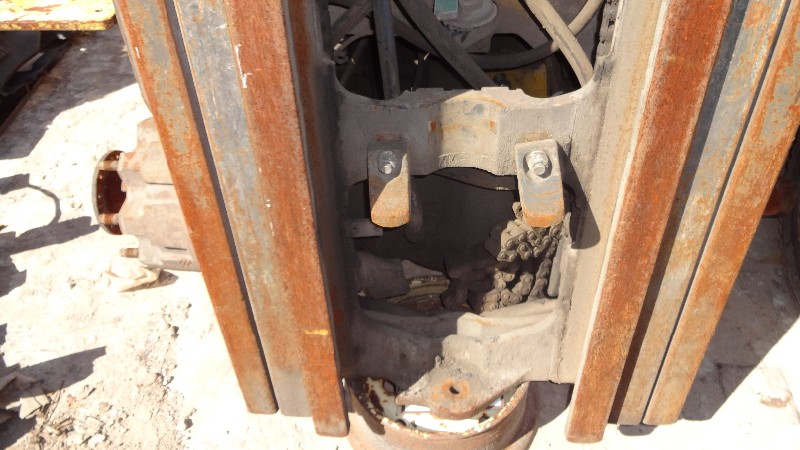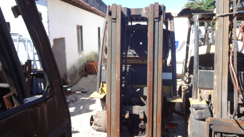 Equipamento com motor Cummins, transmissão, bomba hidráulica, torre triplex incompleta e eixo dianteiro incompleto.
