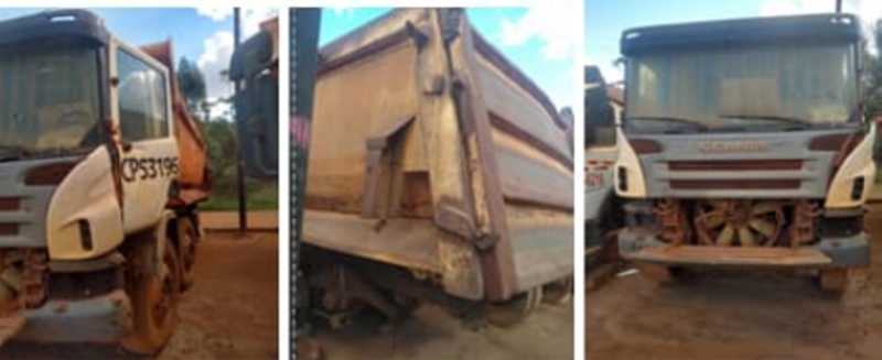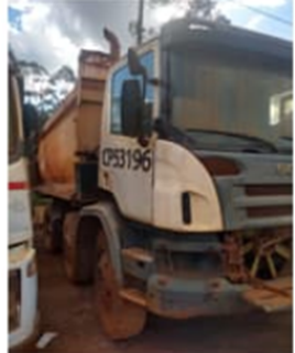Falta banco do motorista. Painel da cabine parcialmente desmontado, podendo faltar partes e peças. Está sem pneus e eixo traseiro, movimentação para retirada somente com guindaste. Ativo sem condições operacionais. Motor com diversas partes faltantes podendo ser deconsiderado. Ativo com Cabine sem condições de operação e sistema eletro hidraulico completamente inoperante. Rodas desgastadas e pneus sem condição de uso devido ao tempo parado. Bascula com defeito e sistema de mangueiras ressecadas/faltando. Borrachas ressecadas e trem de força faltando peças/componentes. Equipamento não operacional, podendo faltar inúmeras peças e componentes. Recomenda-se realizar visita no equipamento. - LOTE ÚNICO - SERÁ VENDIDO NO ESTADO EM QUE SE ENCONTRA - SEM GARANTIA - MECÂNICA SEM TESTE - PODE HAVER FALTA DE PEÇAS. - DESPESAS / REMARCAÇÕES / REGULARIZAÇÕES DE CHASSI / MOTOR / CARROCERIA / OUTROS; SERÃO POR CONTA DO COMPRADOR. – RETIRADA / CARREGAMENTO POR CONTA DO COMPRADOR - VERIFIQUE CONDIÇÕES DE RETIRADA - NÃO SERÃO ACEITAS RECLAMAÇÕES POSTERIORES.