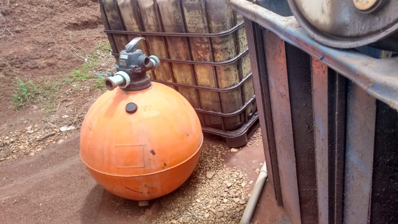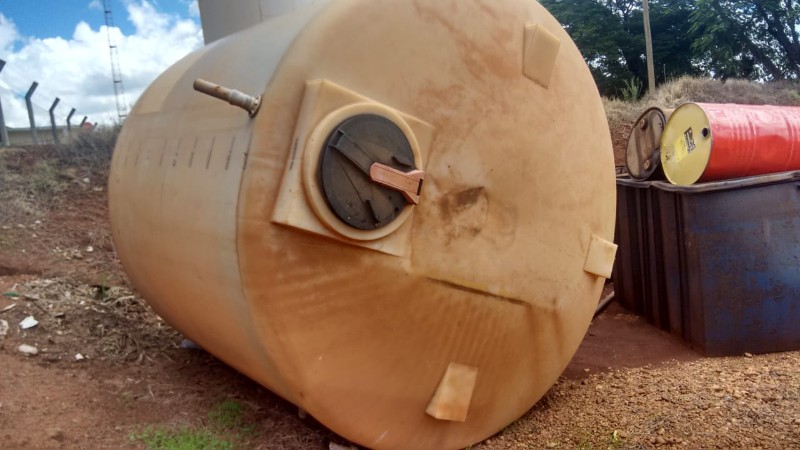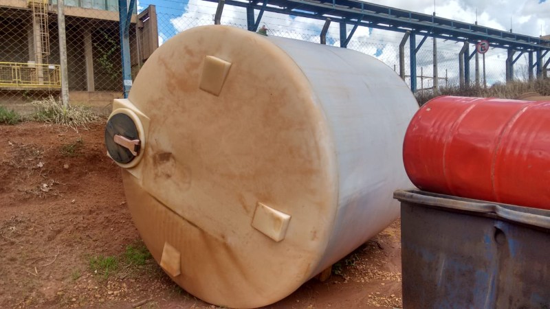 1 TANQUE PLÁSTICO CAP. 12.500 lts APROX., 2 CAIXAS PLÁSTICAS E 1 BOMBA PATRIM. 245515, UND PARAÍSO