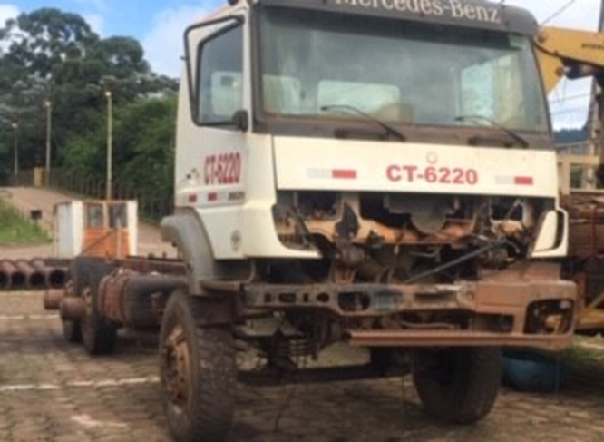 ITA-046-2019 - CAMINHÃO MERCEDES BENZ - AXOR 2831 6X4 - ANO: 2010 - SERIAL / CHASSI: 9BM958264BB753059 - RENAVAM: 488295882 - PLACA: OPN-1899 - TAG/ CP: CT6220 - KMS / HRS TRABALHADAS: NA - CONDIÇÃO: DESATIVADO - IMOBILIZADO: 1000038159 - 8000011009 - MOTOR: NÃO - TRANSMISSÃO: NÃO - CAÇAMBA(PÁ)/ LÂMINA: NÃO - MOTOR: FALTANDO; ; MOTOR DE COMBUSTÃO: COM DEFEITO, RADIADOR: FALTANDO, MANGUEIRAS: FALTANDO , CABINE: FALTANDO, AR CONDICIONADO: FALTANDO; BANCO (S): COM DEFEITO; PAINEL: FALTANDO; PORTAS: COM DEFEITO; RETROVISORES: FALTANDO; VEDAÇÃO: FALTANDO; VIDROS: REGULAR; ALAVANCA DE TROCA DE MARCHAS: FALTANDO; LUZES INDICADORAS: FALTANDO; CHAVE RESERVA: FALTANDO; TAMBOR DE IGNIÇÃO: FALTANDO; ALAVANCA DE SETA/ LIMPADOR: FALTANDO; INTERRUPTORES DE ACIONAMENTO: FALTANDO; SISTEMA DE VENTILAÇÃO: FALTANDO; SISTEMA DE AQUECIMENTO: FALTANDO; ; ESTRUTURA: COM DEFEITO; CHASSI: COM DEFEITO; LATARIA: REGULAR ; RESERVATÓRIO DE COMBUSTÍVEL: REGULAR; ESCADAS: FALTANDO; PARA-CHOQUES: FALTANDO; ; SISTEMA DE DIREÇÃO: FALTANDO; COLUNA DE DIREÇÃO: FALTANDO; BARRAS E TERMINAIS: FALTANDO; VOLANTE: FALTANDO; BOMBA DE DIREÇÃO: FALTANDO; SETOR DE DIREÇÃO: MUITO DESGASTADO; ; SISTEMA DE SUSPENSÃO: COM DEFEITO; BARRAS ESTAB. DIANTEIRA: FALTANDO; BARRAS ESTA. TRASEIRA: FALTANDO; MOLAS: REGULAR; AMORTECEDORES: COM DEFEITO - FALTA AMORTECEDORES TRASEIROS; BALANÇAS: MUITO DESGASTADO; ; SISTEMA DE FREIOS: COM DEFEITO; CUICAS TRASEIRAS: FALTANDO; CUICAS DIANTEIRAS: COM DEFEITO - FALTA CUICA DE FREIO LADO ESQUERDO; SISTEMA PNEUMÁTICO: COM DEFEITO; TAMBORES DE FREIO: REGULAR; ; SISTEMA TREM DE FORÇA: COM DEFEITO; CAIXA DE MUDANÇA: FALTANDO; CAIXA DE TRANSFERÊNCIA: FALTANDO; EMBREAGEM: FALTANDO; CARDANS: FALTANDO; CUBOS DE RODA: REGULAR; DIFERENCIAL: REGULAR; ; SISTEMA ELÉTRICO: FALTANDO; MOTOR DE PARTIDA: FALTANDO; BATERIA: FALTANDO; LIMPADOR DE PARA-BRISA: COM DEFEITO; MÓDULOS ELETRÔNICOS: FALTANDO; BUZINA: FALTANDO; ALERTA DE RÉ (SIRENE): FALTANDO ; ALTERNADOR: FALTANDO; FIAÇÃO E CHICOTES: FALTANDO; INSTRUMENTOS: FALTANDO; ; SISTEMA DE LOCOMOÇÃO: MUITO DESGASTADO; PNEUS/ RODAS: COM DEFEITO: FALTANDO 5 RODAS TRASEIRAS; EIXO DIANTEIRO: REGULAR; EIXO TRASEIRO: REGULAR; ESTEPE: FALTANDO; ; SISTEMA DE SEGURANÇA: FALTANDO; CINTO DE SEGURANÇA: MUITO DESGASTADO; EXTINTOR DE INCÊNDIO: FALTANDO; TRIÂNGULO: FALTANDO; MACACO: FALTANDO; CHAVE DE RODAS: FALTANDO; AIR BAG: FALTANDO; SISTEMA DE ILUMINAÇÃO: FALTANDO; ESTADO GERAL: FALTANDO; ILUMINAÇÃO LATERAL: FALTANDO; FAROL DIANTEIRO: FALTANDO; FAROL TRASEIRO: FALTANDO; OUTROS ACESSÓRIOS: FALTANDO; ; IMPLEMENTOS: NA; BÁSCULA: NA; BAÚ: NA; TANQUE DE ÁGUA: NA FALTANDO O TANQUE DE ÁGUA.; GUINDAUTO: NA; TANQUE HIDRÁULICO: NA ; CILINDRO HIDRÁULICO: NA; SISTEMA HIDRÁULICO: NA; - SERÁ VENDIDO NO ESTADO DE CONSERVAÇÃO EM QUE SE ENCONTRA - LOC.: ITABIRA/ MG