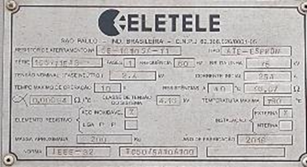 SLB-011-2019 - SUBSTAÇÃO - METTA - - ANO: 2009 - SERIAL / CHASSI: MET57-1070-12 - RENAVAM: - PLACA: - TAG/ CP: SE-1002 SA-02 - KMS / HRS TRABALHADAS: - CONDIÇÃO: EM FUNCIONAMENTO - IMOBILIZADO: 1000024082 - 8000000014 - MOTOR: NÃO - TRANSMISSÃO: NÃO - CAÇAMBA(PÁ)/ LÂMINA: NÃO - SUBESTAÇÃO (QUADRO DE DISTRIBUIÇÃO) 13.8 KV/ 60HZ POTENCIA - 13.8KV QUADROS,PAINEIS SUP A 1000 V OUTROS. - SERÁ VENDIDO NO ESTADO DE CONSERVAÇÃO EM QUE SE ENCONTRA. - ESTE EQUIPAMENTO, DEVIDO SUAS DIMENSÕES, EXIGIRÁ DESMONTAGEM PARCIAL/ TOTAL PARA PROPORCIONAR O SEU TRANSPORTE/ RETIRADA. PARA TRABALHOS EM ALTURA SUPERIOR A 1,80 MTS FAZ-SE NECESSÁRIO A UTILIZAÇÃO DE ESCADA PLATAFORMA E/ OU PLATAFORMA ELEVATÓRIA. PARA IÇAMENTO DAS CARGAS, DEVERÁ SER UTILIZADO EQUIPAMENTO DE GUINDAR COM CAPACIDADE COMPATÍVEL COM O PESO DA PEÇA. PARA PEÇAS COM PESO SUPERIOR A 10 T SERÁ NECESSÁRIO PLANO DE RIGG. PARA MOVIMENTAÇÃO DE PEÇAS DEVERÁ SER UTILIZADO CAMINHÃO MUNCK OU EMPILHADEIRA COM CAPACIDADE COMPATÍVEL COM O PESO DESTES ITENS. DEVERÁ SER OBSERVADO O CUMPRIMENTO A LEGISLAÇÃO APLICÁVEL E ATENDIMENTO AOS REQUISITOS LEGAIS. - SERÁ VENDIDO NO ESTADO DE CONSERVAÇÃO EM QUE SE ENCONTRA - LOC.: MARABA/ PA