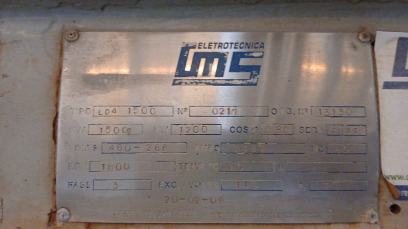 GERADOR MAUSA LD4/1500 COM REDUTOR(CONJUNTO 1). - PAT. 53131-53130. - LOC. BOM RETIRO .