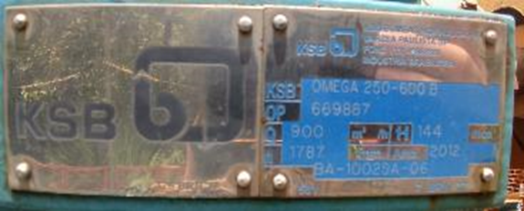 SLB-006-2019 - BOMBA - KSB - OMEGA 250-600B - ANO: 2012