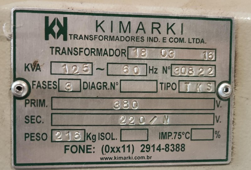 TRANSFORMADOR DE ENERGIA TRIFÁSICO 220V/380V 125KVA KIMARKI