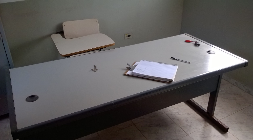 11 MESAS, 35 CADEIRAS (REFEITORIO), 1 MESA ESCRITÓRIO, 1 TV 20 PANASONIC SEM TESTE