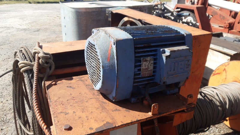 REDUTOR GRANDE COM MOTOR ELÉTRICO 220V; C/ CARRETEL COM CABO DE AÇO