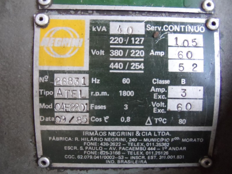 GRUPO GERADORES DE 1000 KVA, 500 KVA, 330 KVA, 375 KVA,100 KVA, 53 KVA e 40 KVA - VISITAÇÃO DIA 17/07/2019 COMPARECER DIRETO: AV. RIO DAS PEDRAS, 4341, (ESQ. AV. ARICANDUVA)