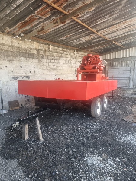 CARRETINHA TANQUE REBOCÁVEL; DUPLO EIXO; EQUIPADA C/ MOTO-BOMBA VW (MOTOR DE FUSCA) E ESPARGIDOR TRASEIRO; CAP. APROX. 4.800L