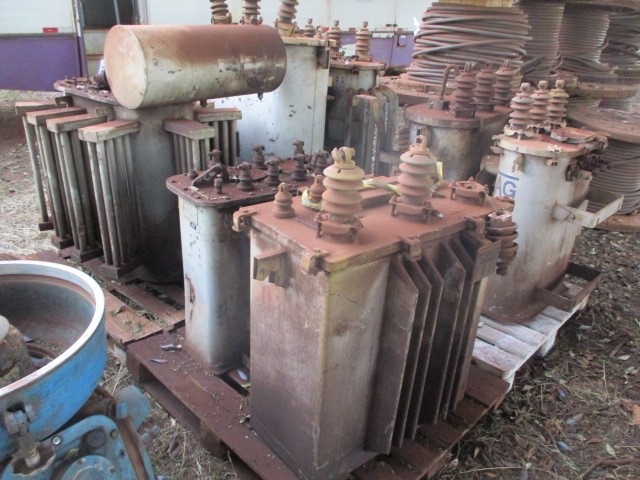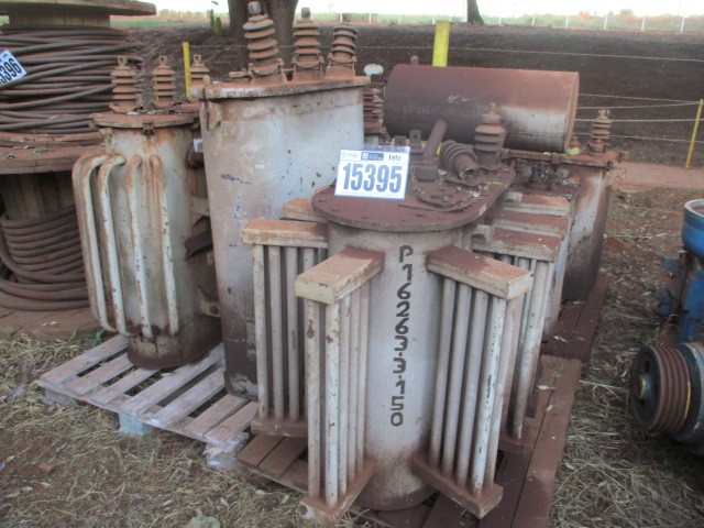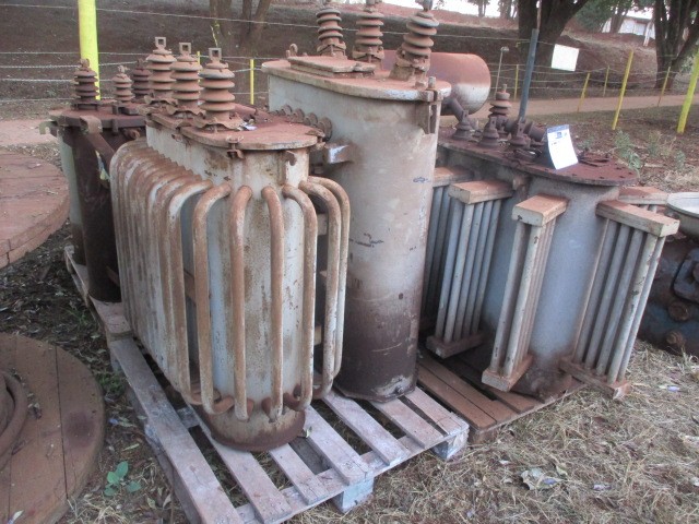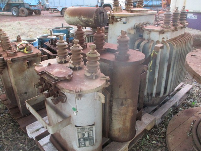 1 Transformador Nativa 75 kVA 12kV para 220V/127V n° série 395 - 1 Transformador EBS 30kVA 12kV para 220V n° série 321198 - 1 Transformador GE 75kVA 12kV para 220V n° série B32927 s/ óleo - 1 Transformador São Carlos 30kVA 220V para 380V n° série 0018 - 1 Transformador 15kVA (não identificado na placa) - 1 Transformador Dedini 150kVA 12kV 220V n° série 62116 e 1 1 Transformador não identificado.