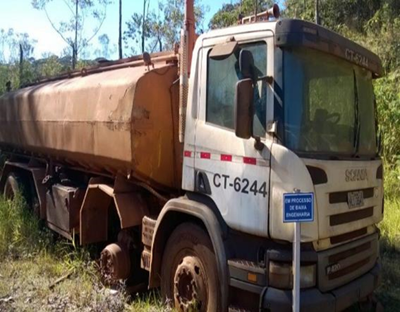 MARI-CT6244-2019 - Caminhão Pipa - SCANIA - P420 B 8X4 - Ano: 2010 - Serial / Chassi: 9BSP8X400B3674844 - Placa: HLI-3547 - TAG/CP: CT6244 - KMs / Hrs trabalhadas: N/A - Condição: Desativado - Imobilizado: 1000041695 - 8000011445 - Motor: SIM - Transmissão: SIM - Caçamba(pá)/lâmina: SIM - Sem condições operacionais atuais. Veículo necessita de reforma geral no trem de força (motor, caixa de transferencia, eixo cardan e diferencial)Motor com defeito. Pneus sem condições de rodagem, Faltam alguns pneus. Painel operacional faltando componentes. Necessita de aquisição de novo circuito elétrico, além de todos os componentes avariados por exposição a intempéries. Apresenta trincas na estrutura. Embuchamento danificado. Desarqueando devido vida útil. Folga axial e radial. Os eixos de carga estão somente com pneus externos. Será vendido no estado em que se encontra loc: Mariana-MG