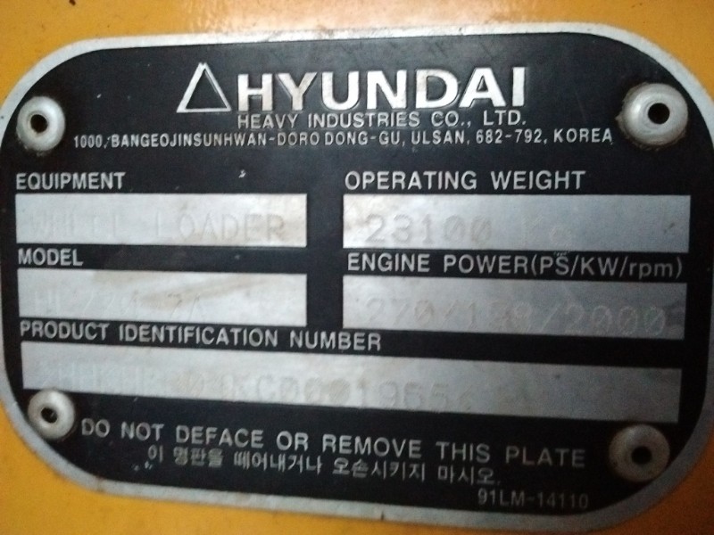 PÁ CARREGADEIRA, MARCA HYUNDAI, MODELO HL 770-7A, ANO 2013, HORAS 5847H, SÉRIE: HHKHLB04KC0001965 - SERÁ VENDIDO NO ESTADO DE CONSERVAÇÃO EM QUE SE ENCONTRA - SEM TESTE - VISITE O LOTE NÃO SERÁ ACEITA RECLAMAÇÕES POSTERIORES - LOC:Betim/MG