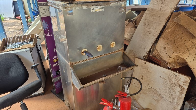 SUCATA DE MÓVEIS E UTENSÍLIOS: FOGÃO, BEBEDOURO INDUSTRIAL, MESA DE BILHAR, CADEIRAS, ARMÁRIOS E VIDROS. - N/A. - LOC. BARRA