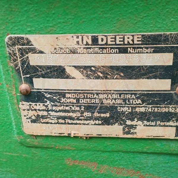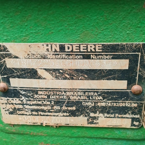 TRATOR JOHN DEERE 7225 J 4X4 - ANO 2016 - FR115709 - LOC. SANTA CÂNDIDA
